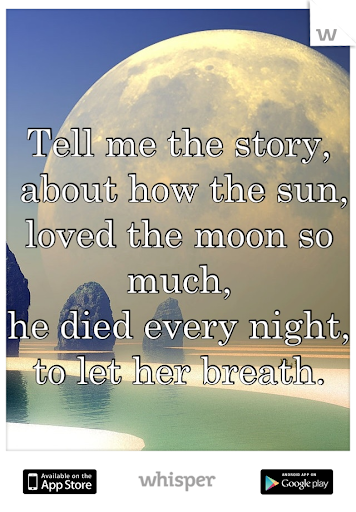 “tell me the story about how the sun loved the moon so much he died every night just to let her breath.” she asked. “tell me the story about how the sun loved the moon so much he died every night to let her breathe.” there once was a moon, as beautiful as can be, only the stars could fathom, but the. Decided they would be such.